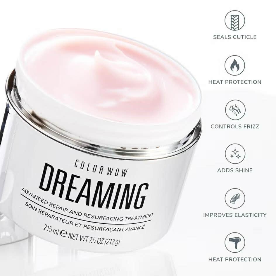 Unlock a sleek, smoother finish whatever your desired style with Color Wow's Dreaming Advance Repair and Resurfacing Treatment (215ml). Championing a nourishing blend of ingredients, this treatment literally coats hair with moisture, so locks are left glass-like. Weightless and hydrating down to the final drop, this stylist-grade formula keeps hair feeling healthy and sporting a glossy, ultra-silky finish. Come rain or shine, one thing's for sure, you'll turn heads everywhere.