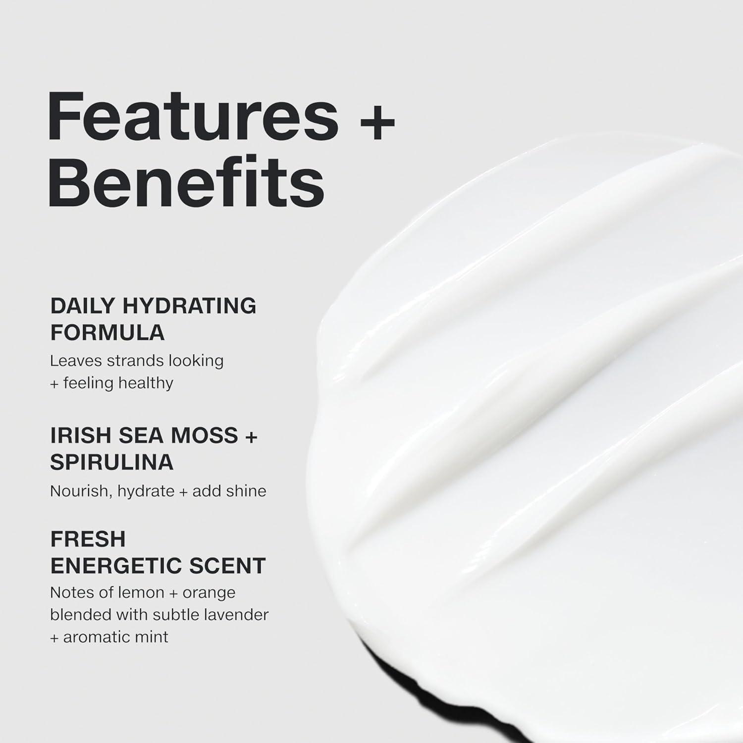 Moisturizing conditioner infused with Irish sea moss and spirulina hydrates and revives dry hair while boosting shine and helping to prevent damage.