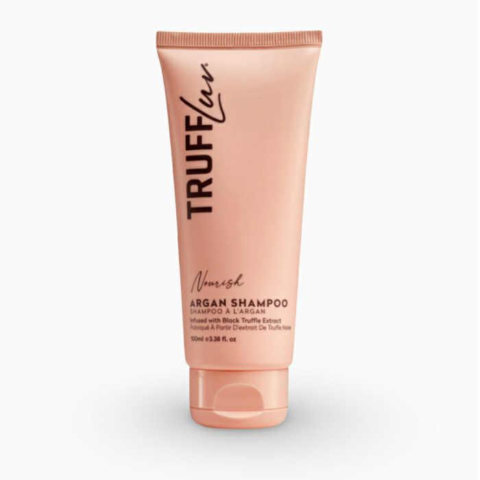 TRUFFLUV Argan Shampoo Replenishing hair damaged by heat, chemicals and environmental elements, the Nourish Collection’s Argan Shampoo invigorates, soothes and deeply nourishes the hair and scalp. The Argan Shampoo cleanses the hair of excess oils, balances the scalp’s pH level, and repairs and strengthens strands.